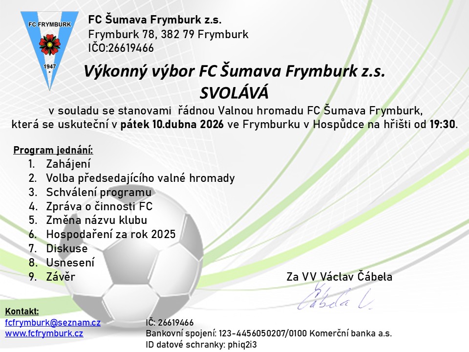 P O Z V Á N K A UPOZORNĚNÍ: Každý člen klubu od 18.let má povinost se VH zúčastnit, což je dáno stanovami klubu.